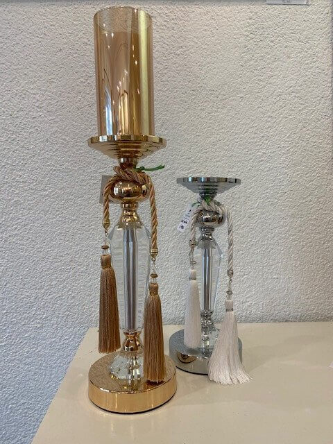 Svícen zlatý, kov a sklo